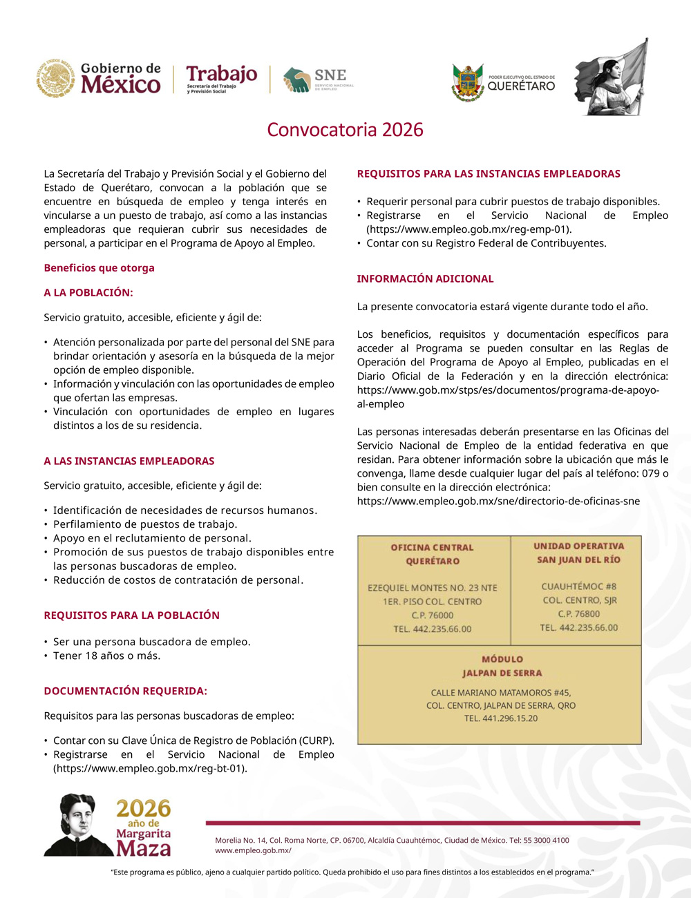 Convocan a la población que se encuentre en búsqueda de empleo y tenga interés en vincularse a un puesto de trabajo, así como a las instancias empleadoras que requieran cubrir sus necesidades de personal, a participar en el Programa de Apoyo al Empleo.